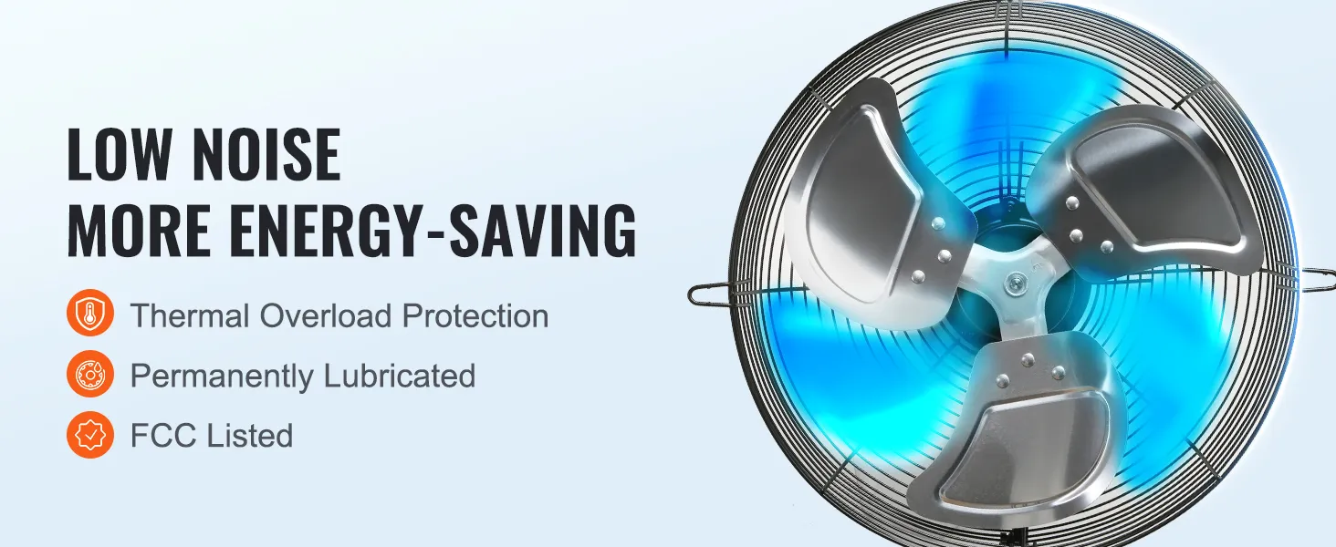 Our louvered fan is equipped with overload protection, ensuring safety from fire hazards caused by overheating even during prolonged use. The fan operates with low noise, ensuring it won’t disturb your family's daily routine.
