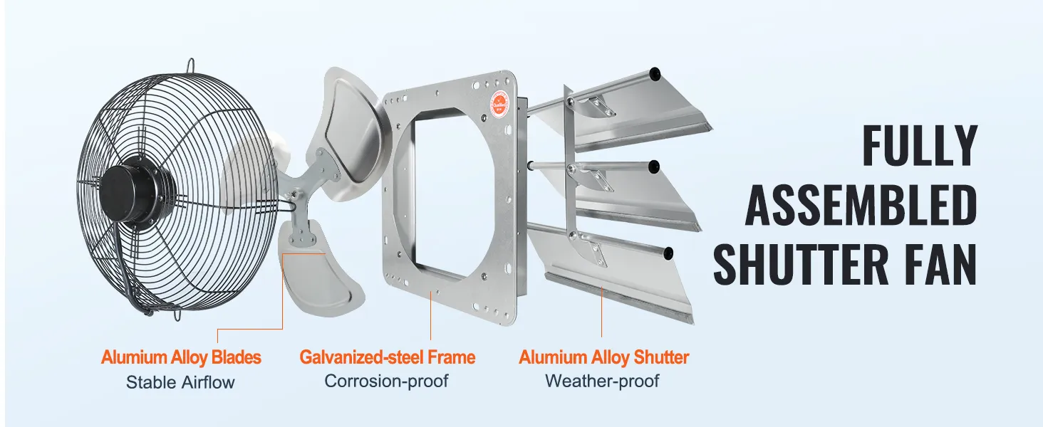 Our louvered fan comes in four parts, requiring no complex assembly upon arrival. You can easily put it together and have it up and running in no time.
