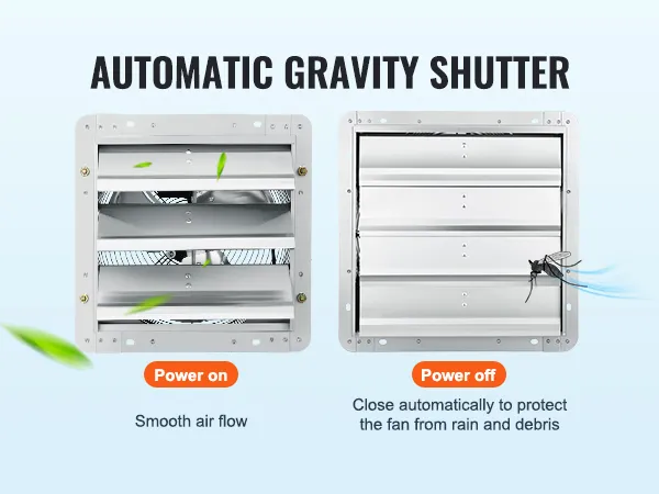 Automatic Shutdown: The high-quality materials used in the housing and grille ensure that the fan maintains excellent performance even in harsh weather conditions like rain and snow. The louvered fan automatically shuts down during the winter when not in use to help maintain indoor temperature.