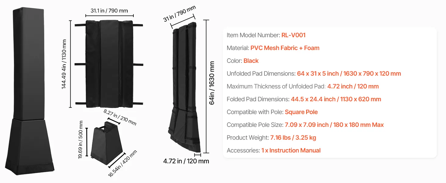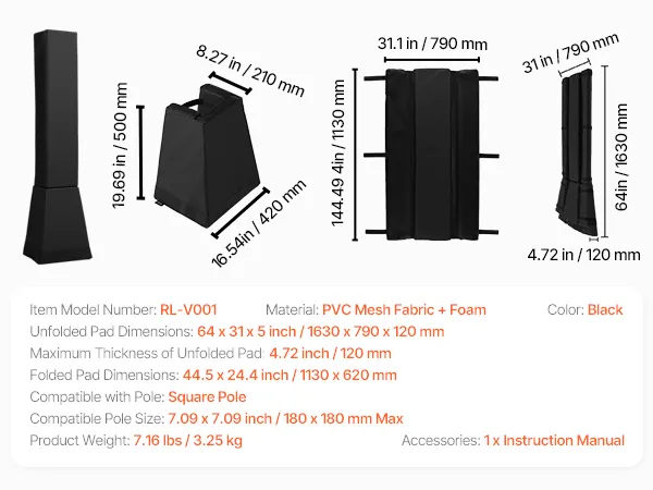 Wide Compatibility: This square pole padding is designed to fit square poles ranging from 6x6 inch to 7x7 inch (152x152 mm to 180x180 mm). Simply measure your pole to easily select the ideal size for a snug fit