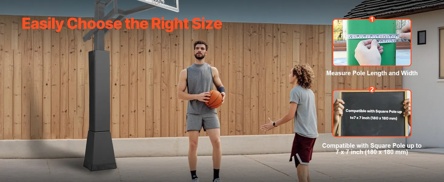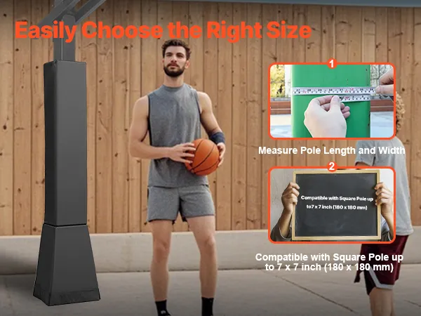 Made with premium PVC material, this basketball pole pad is wear and tear-resistant, ensuring it won't fade or deform over time. Designed for trapezoidal base square pole sized 6x6-7x7 inch (152x152-180x180 mm), it helps absorb impact for athletes. Easy to install, providing security for game.