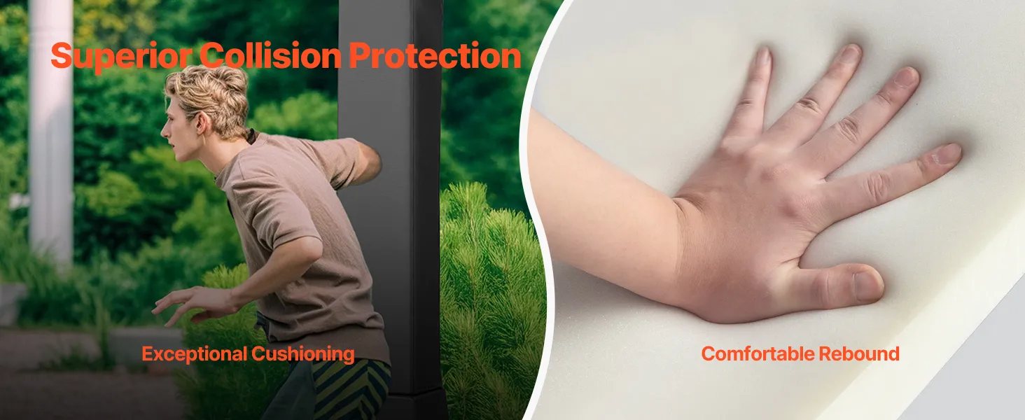 Optimal Guard: Our pole padding includes a thick 2-inch (50mm) foam core with a density of 1.56 lb/ft³ (25 kg/m³). It effectively absorbs impact forces, ensuring the security of athletes and equipment, making it ideal for various sports scenarios