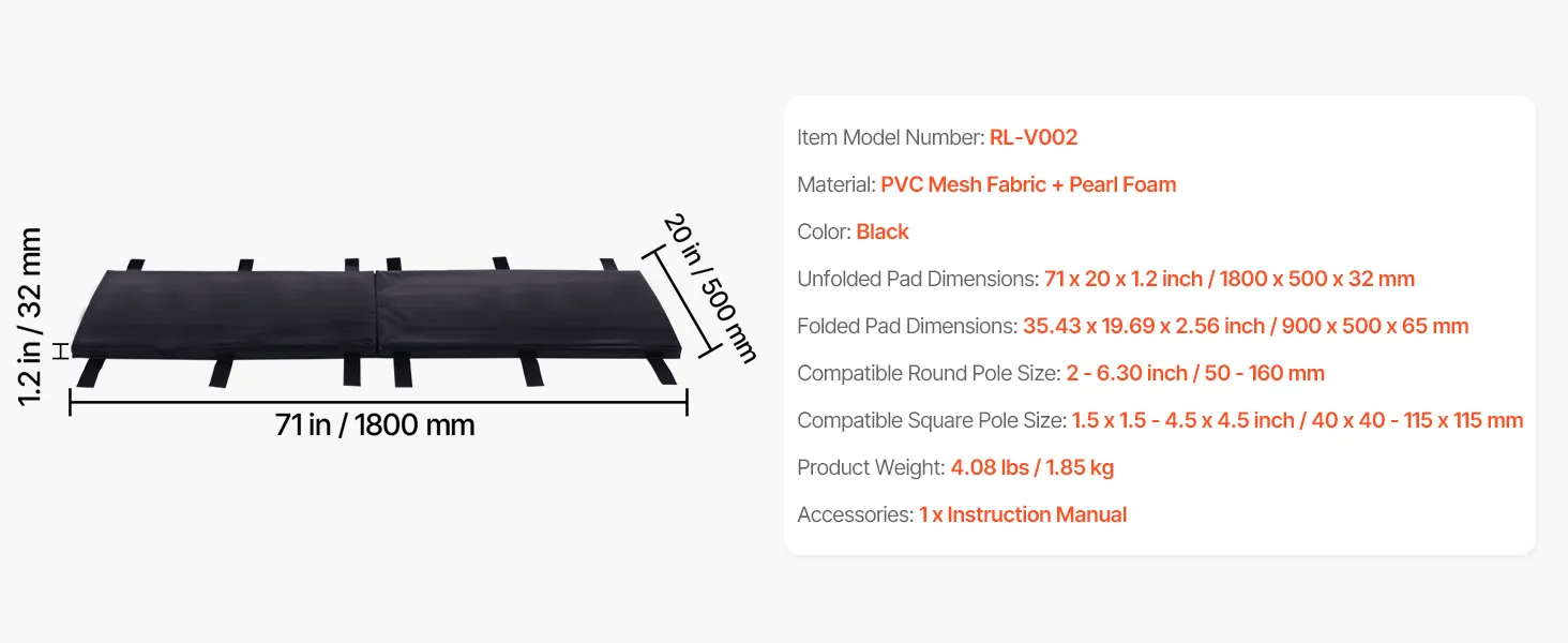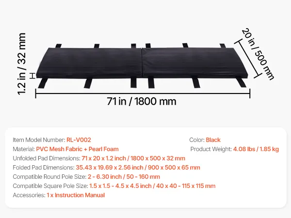 Optimal Guard: Our pole padding includes a thick 1.2-inch (30mm) pearl foam core with a density of 1.06 lb/ft³ (17 kg/m³). It effectively absorbs impact forces, ensuring the security of athletes and equipment, making it ideal for various sports scenarios