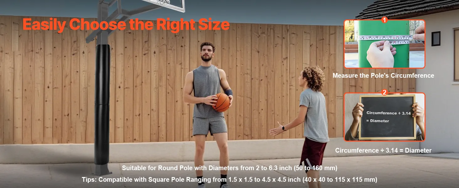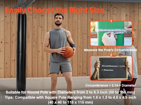 This basketball pole padding makes it easy to measure your pole's circumference, fitting round poles with a diameter of 2-6.3 inch (50-160 mm). It also fits square poles measuring 1.5x1.5-4.5x4.5 inch (40x40-115x115 mm). Choose quickly and precisely for an ideal fit and enhanced user experience.
