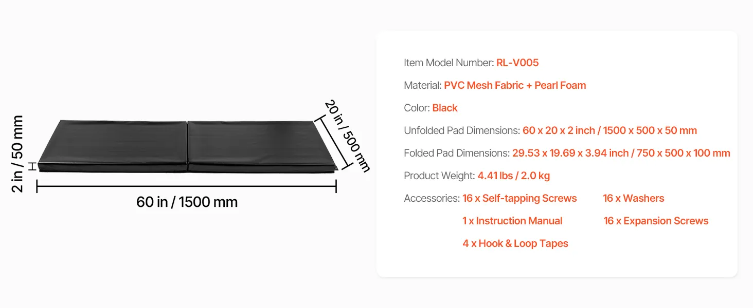 Wide Compatibility: This basketball court wall pad comes in a flat design measuring 60x20x2 inch (1500x500x50 mm). Multiple pads can be purchased and combined to fit various wall sizes, making it easy to select the ideal pad for your needs