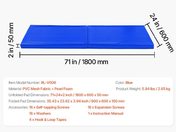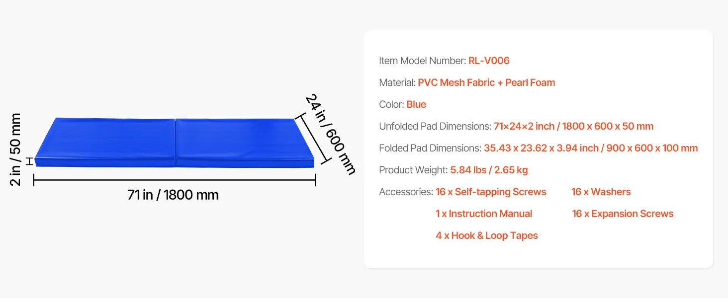 Wide Compatibility: This basketball court wall pad comes in a flat design measuring 71x24x2 inch (1800x600x50 mm). Multiple pads can be purchased and combined to fit various wall sizes, making it easy to select the perfect pad for your needs