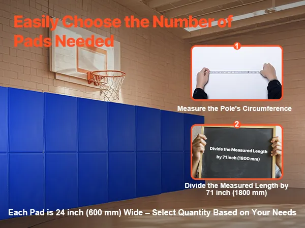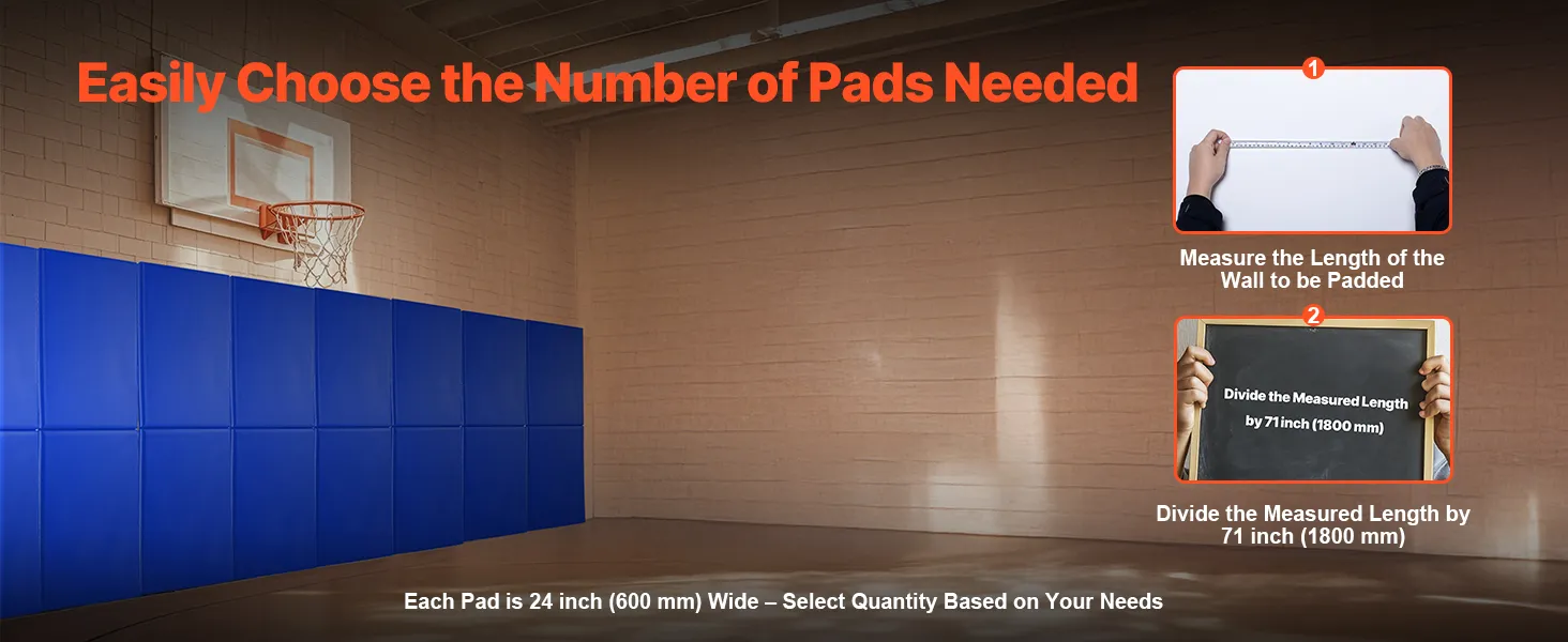 This basketball court wall pad allows you to measure the wall's length to easily determine the number of pads needed. It is compatible with walls up to 71x24 inch (1800x600 mm). With quick and accurate selection, it ensures an ideal fit and improves usability.