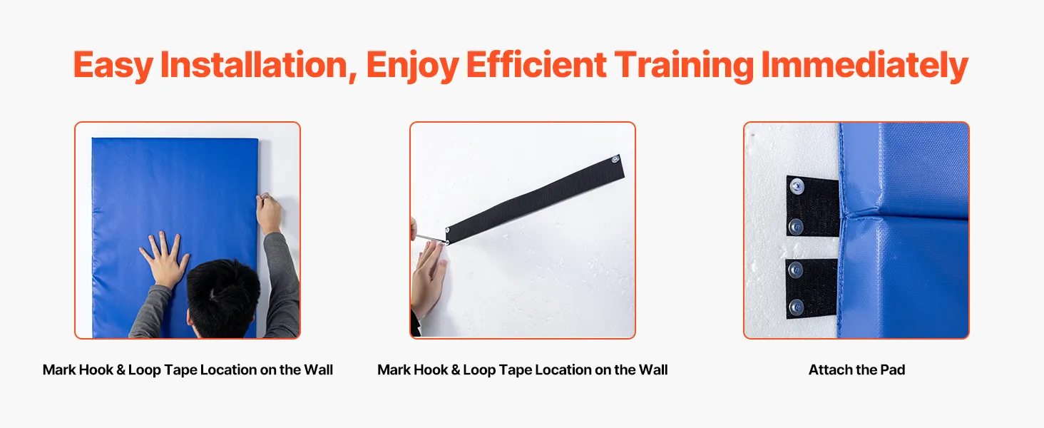 This basketball gym wall pad requires no complicated tools—simply mark the hook-and-loop tape position on the wall, secure with screws, and attach the pad. With simple operation, you can quickly prepare for training, saving time and improving efficiency.