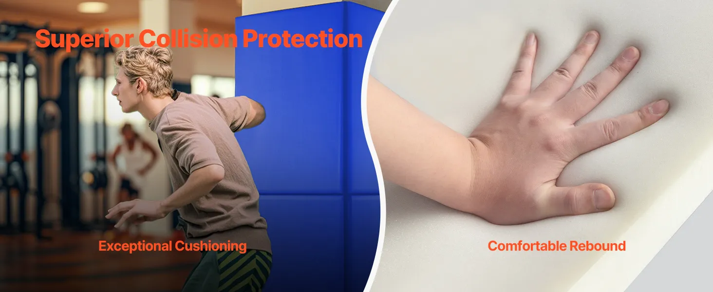 Optimal Guard: Our wall padding includes a thick 2-inch (50mm) pearl foam core with a density of 1.06 lb/ft³ (17 kg/m³). It effectively absorbs impact forces, ensuring the security of athletes and equipment, making it ideal for various sports scenarios