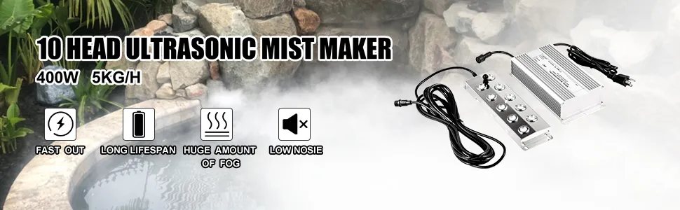 De 10-kops mistbevochtiger maakt gebruik van elektrische oscillatie op ultrasone frequenties en kan een grote hoeveelheid mist aan uw vijver of watertank toevoegen om de slechte geur te filteren.
