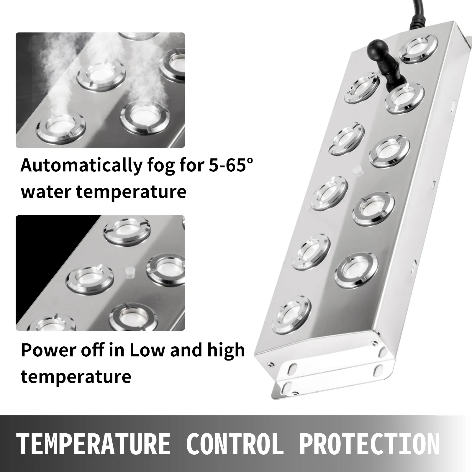Deze ultrasone mistervernevelaar met 10 Hoofd maakt gebruik van elektrische oscillatie op ultrasone frequenties. De pond mister fogger is gemaakt van roestvrij staal dat IP67 waterdicht en corrosiebestendig is voor een lange levensduur.