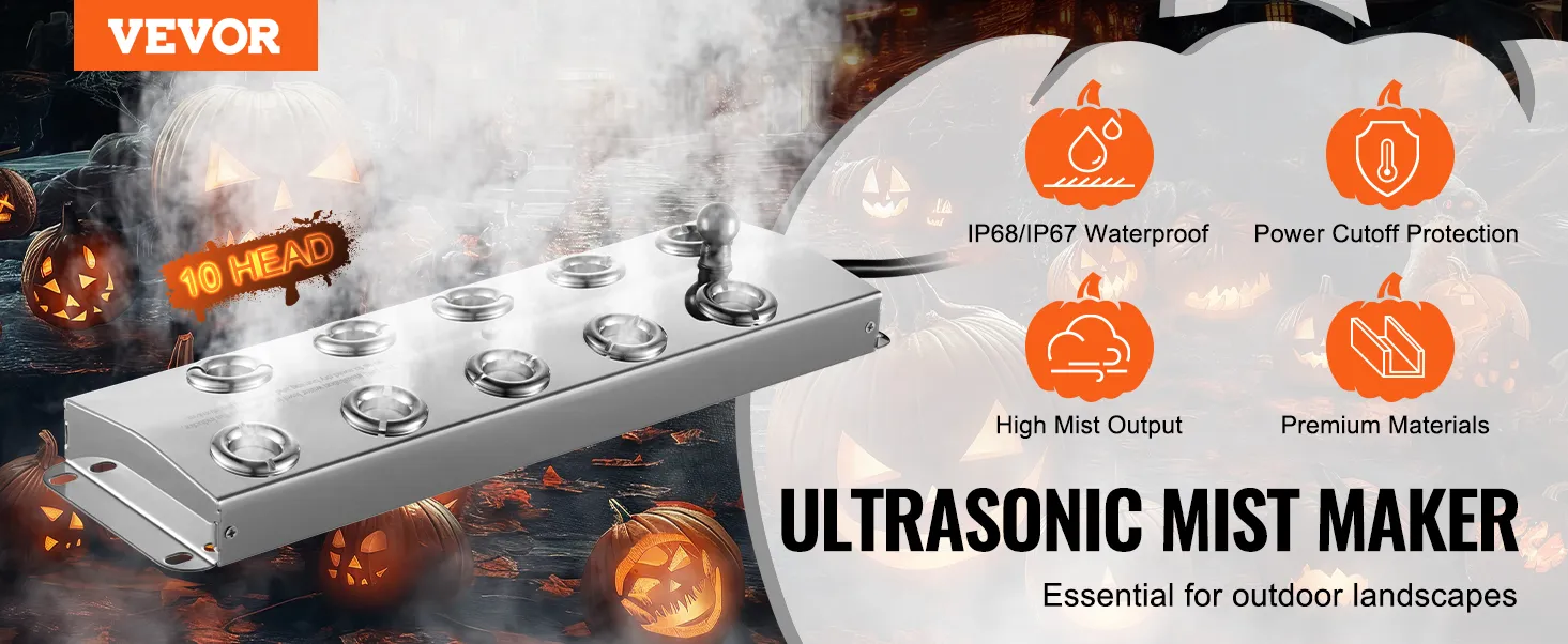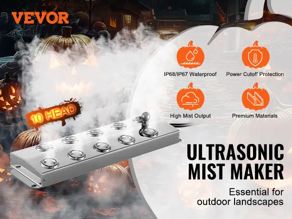 Duurzaamheid: de 10-koppige ultrasone mistgenerator is gemaakt van 304 roestvrij staal en PP, met een hoge sterkte, corrosiebestendigheid en weerstand tegen verkalking. De IP68-waterdichtheid voor de mistgenerator en de IP67-waterdichtheid voor de voeding garanderen langdurig gebruik in vochtige en stoffige omgevingen.