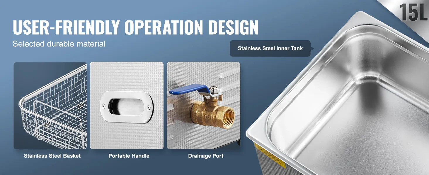 Deze ultrasone reiniger is vervaardigd met tanks van hoogwaardig 304 roestvrij staal om een lange levensduur met consistente reinigingsresultaten te garanderen.