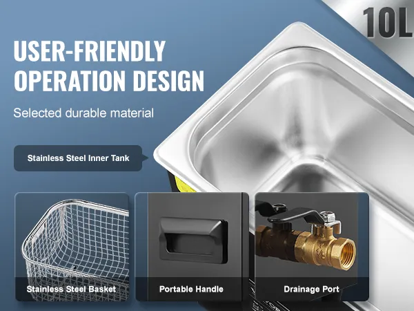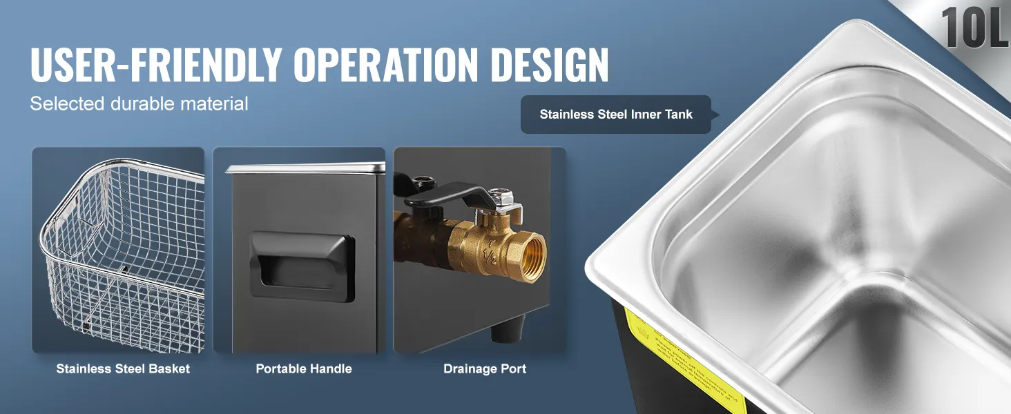 Outstanding Quality: Made with corrosion-resistant and wear-resistant 304 stainless steel baskets and inner chambers, the included basket prevents scratches during cleaning. The portable handle and convenient drainage design make operation easy and straightforward, with every detail designed to provide an exceptional cleaning experience.