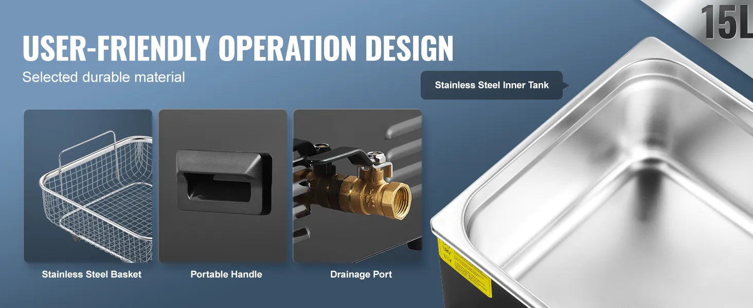 Outstanding Quality: Made with corrosion-resistant and wear-resistant 304 stainless steel baskets and inner chambers, the included basket prevents scratches during cleaning. The portable handle and convenient drainage design make operation easy and straightforward, with every detail designed to provide an exceptional cleaning experience.