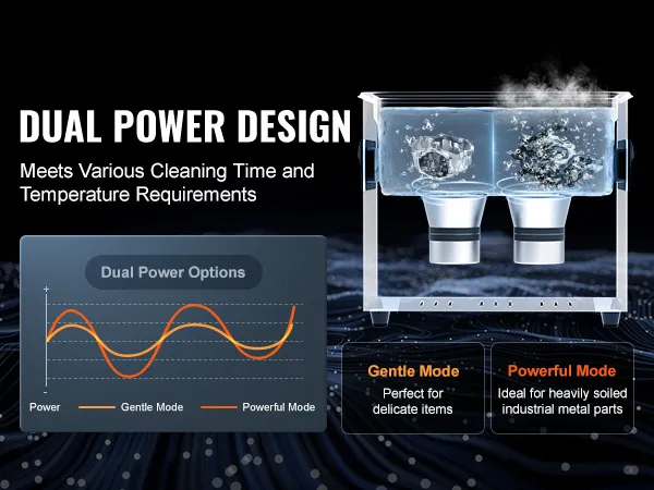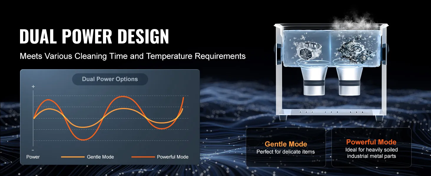 • Dual-Power Degassing Mode: The degassing mode effectively removes air from the liquid, enhancing working efficiency by 30% and achieving zero-angle precision cleaning of internal holes and crevices. With dual power options, cleaner machine caters to both delicate items and heavy-duty industrial products, making cleaning more targeted without causing damage.
