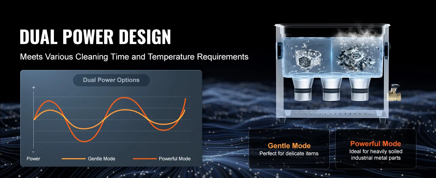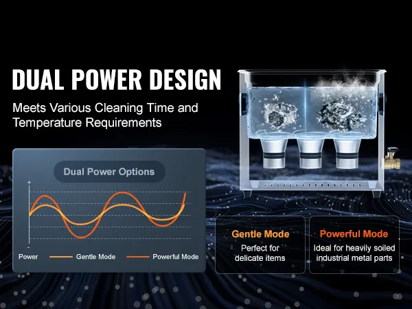 Dual-Power Degassing Mode: The degassing mode effectively removes air from the liquid, enhancing working efficiency by 30% and achieving zero-angle precision cleaning of internal holes and crevices. With dual power options, cleaner machine caters to both delicate items and heavy-duty industrial products, making cleaning more targeted without causing damage.