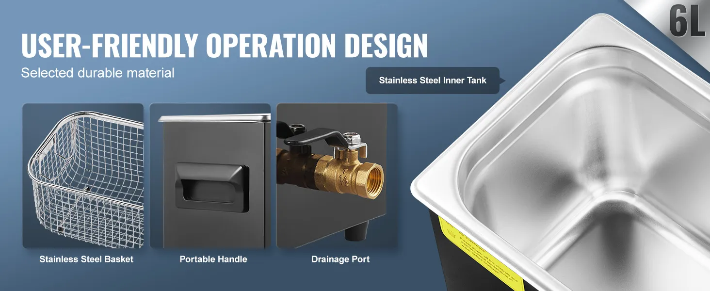 Outstanding Quality: Made with corrosion-resistant and wear-resistant 304 stainless steel baskets and inner chambers, the included basket prevents scratches during cleaning. The portable handle and convenient drainage design make operation easy and straightforward, with every detail designed to provide an exceptional cleaning experience.