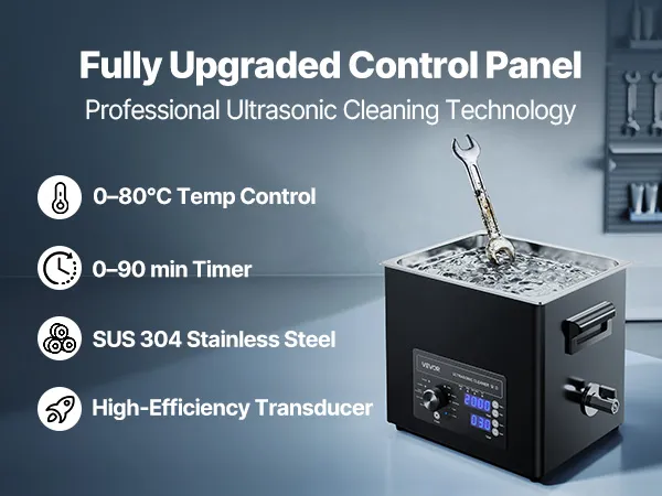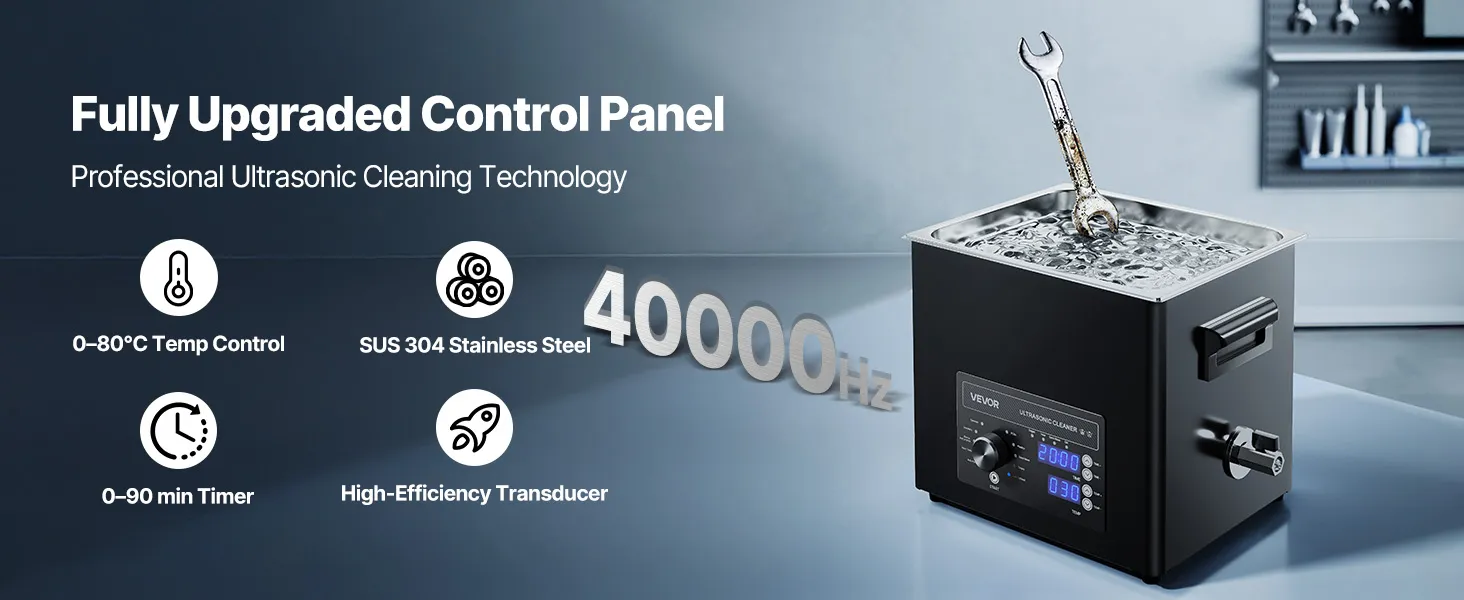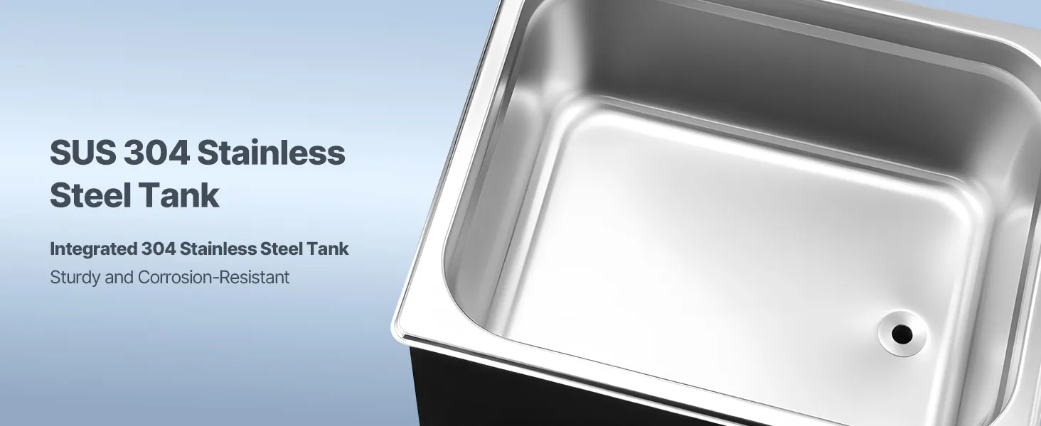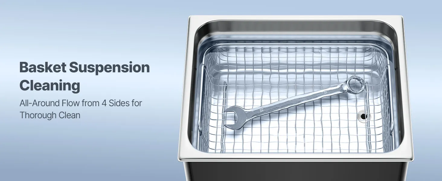 Onze ultrasone reiniger maakt gebruik van geavanceerde ultrasone technologie met een ontgassingsmodus om luchtbellen te verminderen en diep in gaten en spleten door te dringen voor een grondige reiniging. Dit verhoogt de efficiëntie met 30%.