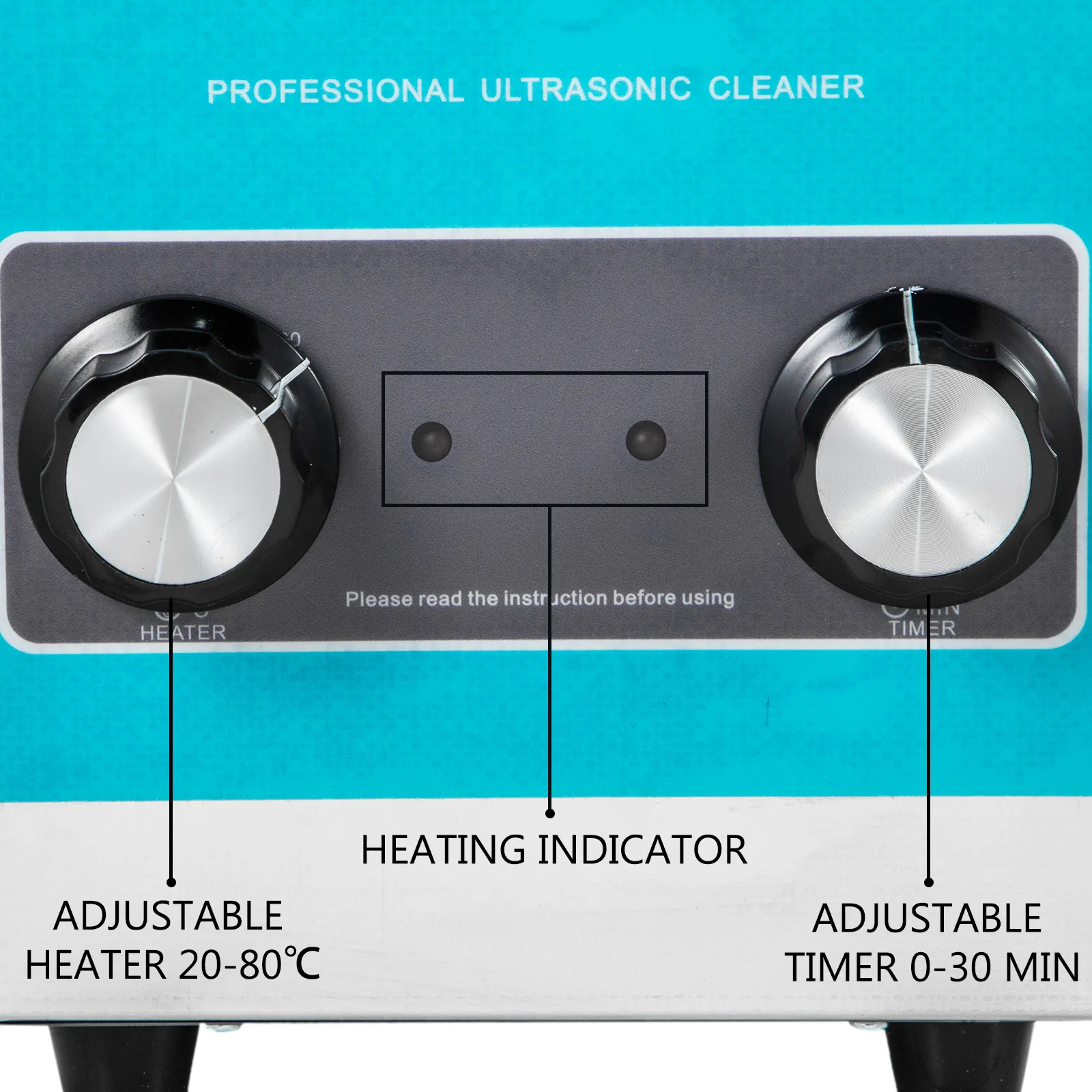 Werkelijke reinigingswerktijd (0-30 min instelbaar); ook kan het de vloeistof tussen 20-80 ℃ verwarmen met twee mechanische knoppen om functies aan te passen.