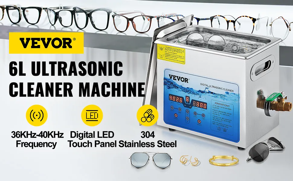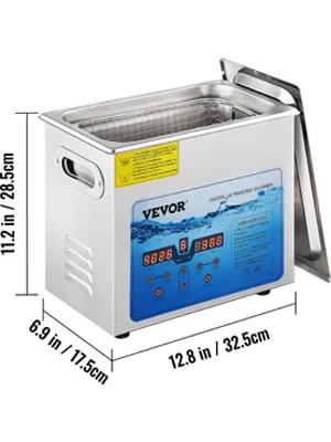 De sonische reinigers van de VEVOR hebben instelbare frequentie, tijd en temperatuur om aan uw verschillende reinigingsbehoeften te voldoen. Het premium 304 roestvrij staal en de complete accessoires zorgen voor een lange levensduur en maximaal comfort. Het ontwerp van de warmteafvoeropening, antislip rubberen voetjes en afvoerklep zorgen ervoor dat de sieradenreinigingsmachine soepel en veilig werkt zonder enige schade. Bovendien kregen onze producten de FCC/CE/RoHS-certificaten. De professionele ultrasone sieradenreiniger is een optimale oplossing voor laboratorium, huis, handel, industrie, fabriek, enzovoort.