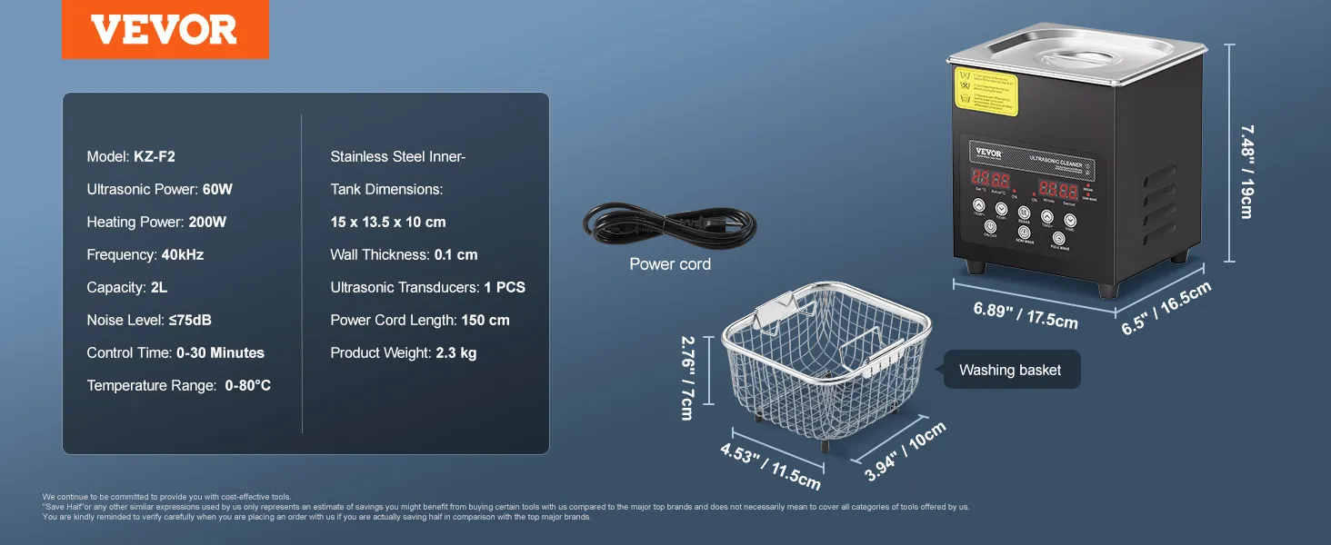 VEVOR Ultrasonic Cleaner 2L Cleaning Machine with Timer Heater & Basket 60W VEVOR Ultrasonic Cleaner 2L Cleaning Machine with Timer Heater & Basket 60W