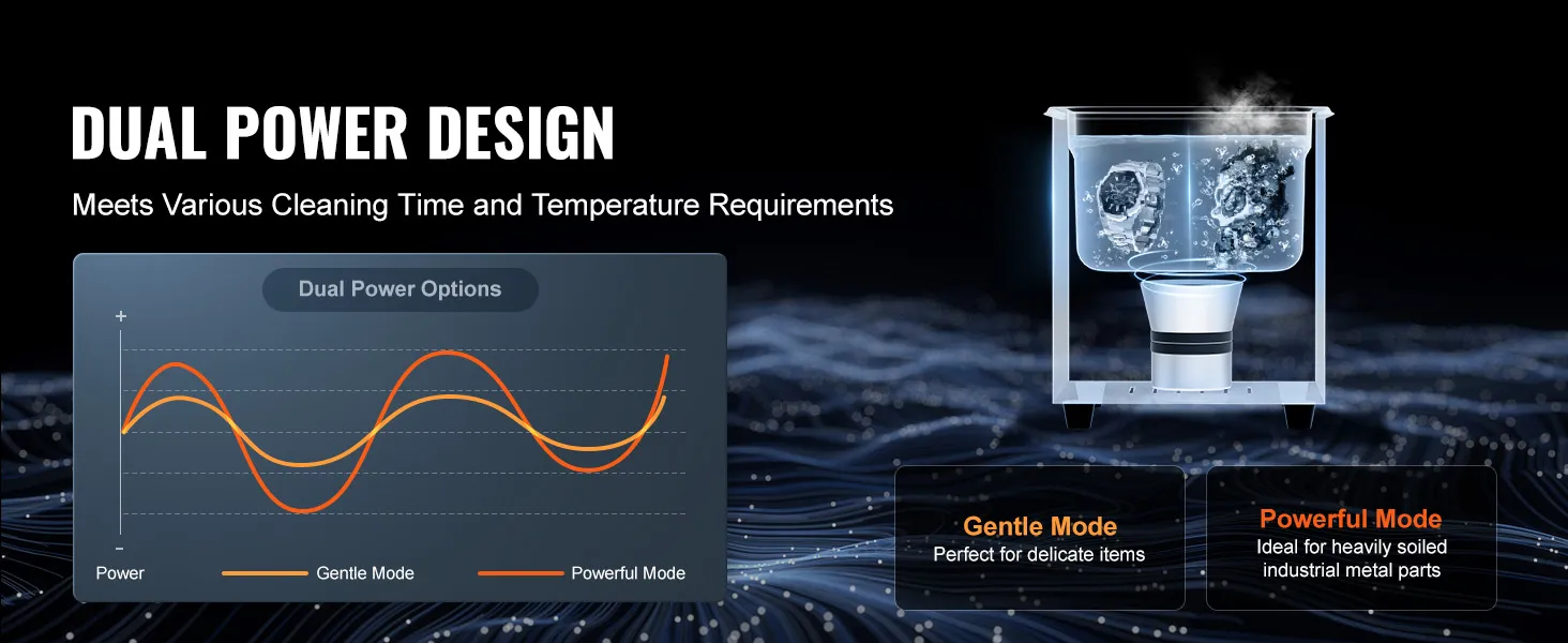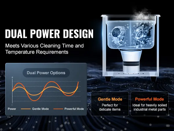 • Dual-Power Degassing Mode: The degassing mode effectively removes air from the liquid, enhancing working efficiency by 30% and achieving zero-angle precision cleaning of internal holes and crevices. With dual power options, cleaner machine caters to both delicate items and heavy-duty industrial products, making cleaning more targeted without causing damage.