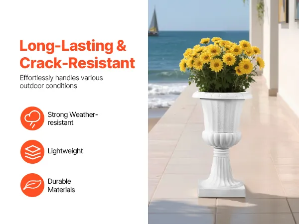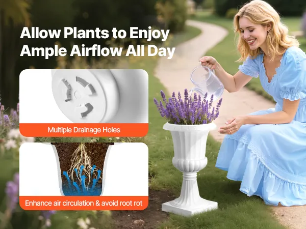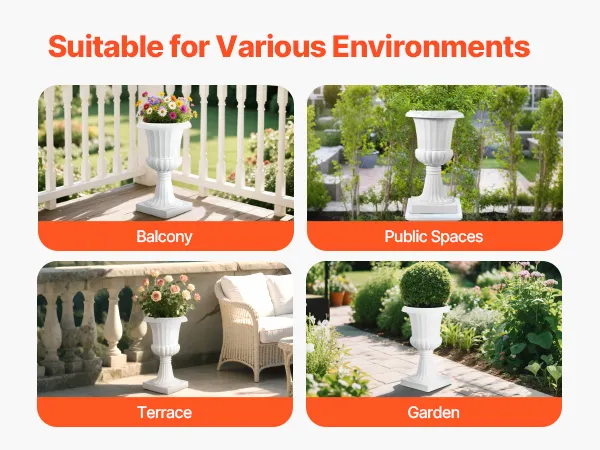 Veelzijdig: het stijlvolle en praktische ontwerp van de klassieke bloempotten past perfect in deurkozijnen, tuinen en patio's, waardoor de natuurlijke schoonheid van elke kamer wordt benadrukt en tegelijkertijd functionele opslag voor planten wordt geboden.