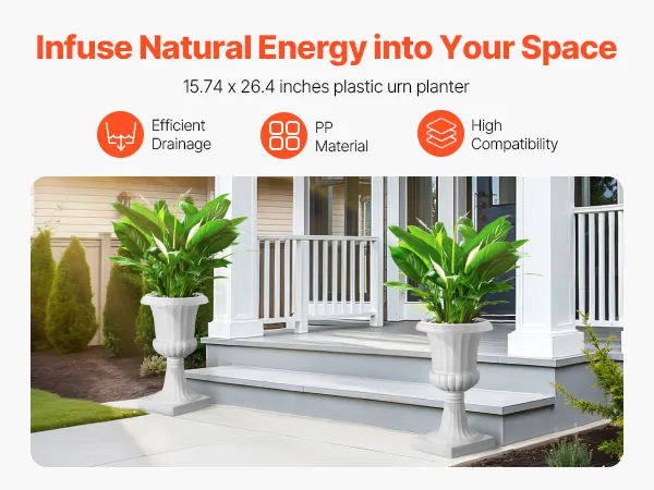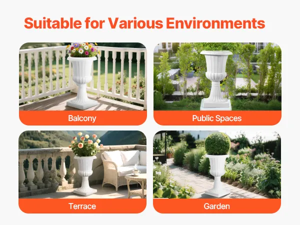 Veelzijdig: het stijlvolle en praktische ontwerp van de klassieke bloempotten past perfect in deurkozijnen, tuinen en patio's, waardoor de natuurlijke schoonheid van elke kamer wordt benadrukt en tegelijkertijd functionele opslag voor planten wordt geboden.