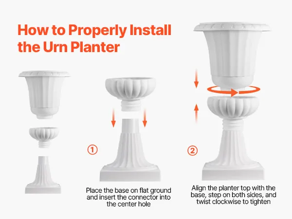 Geen gereedschap nodig! Bevestig simpelweg de voet, plaats de connector, richt de plantenbak uit en draai hem vast. In slechts twee stappen is de vormsnoeibak klaar voor gebruik, zodat u direct kunt beginnen met planten.