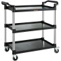 Deze 3-laags foodservicewagen kan tot 220 lbs per laag dragen. Dit betekent dat de wagen borden, gereedschap, boeken en meer aankan. De lagen bieden voldoende ruimte voor het organiseren van verschillende items. Het zorgt ervoor dat elk item veilig blijft. Deze lagen zijn sterk en kunnen een aanzienlijk gewicht dragen. Daarom is het veelzijdig en kan het aan verschillende behoeften voldoen. Het maakt niet uit of u in een tv-werkplaats, thuis of in een restaurant bent, deze wagen kan gemakkelijk aan uw opslagbehoeften voldoen!