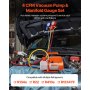 A: The pump features a single-stage rotary vane design with a flow rate of 4 CFM, making it ideal for home air conditioning systems. It achieves a vacuum level of ≤20Pa, is compatible with refrigerants such as R134a, R22, R410a, R1234YF, and R32, including A2L and A1 refrigerants.