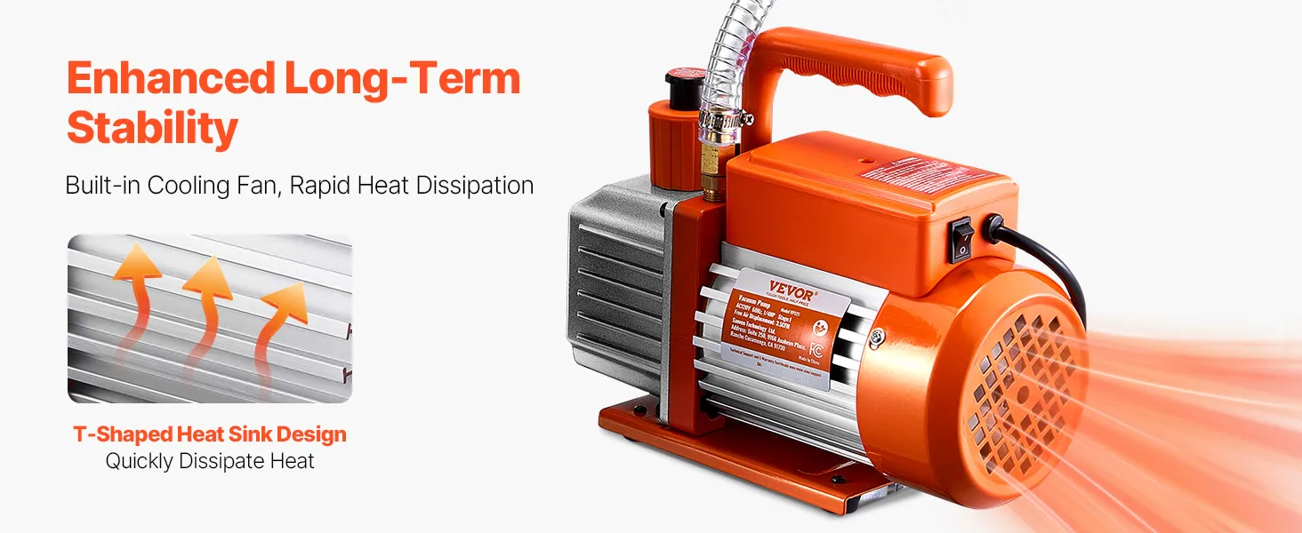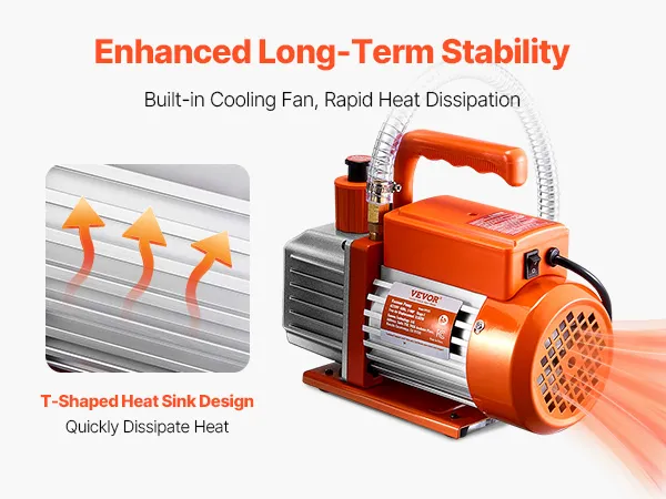 Stable & Reliable Operation: Powered by a four-stage, pure copper motor, our HVAC vacuum pump delivers long-lasting power and superior efficiency. Plus, the built-in cooling fan avoids overheating during extended use, ensuring stable, reliable performance for every job.