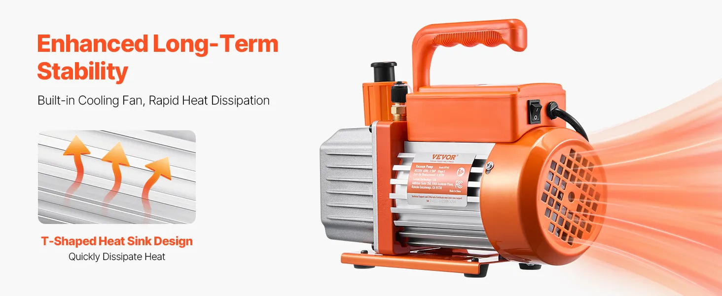 Ons geavanceerde koelsysteem zorgt ervoor dat de HVAC-vacuümpomp op een optimale temperatuur blijft draaien, waardoor een consistente, krachtige zuigkracht wordt gegarandeerd zonder risico op oververhitting of prestatieverlies.