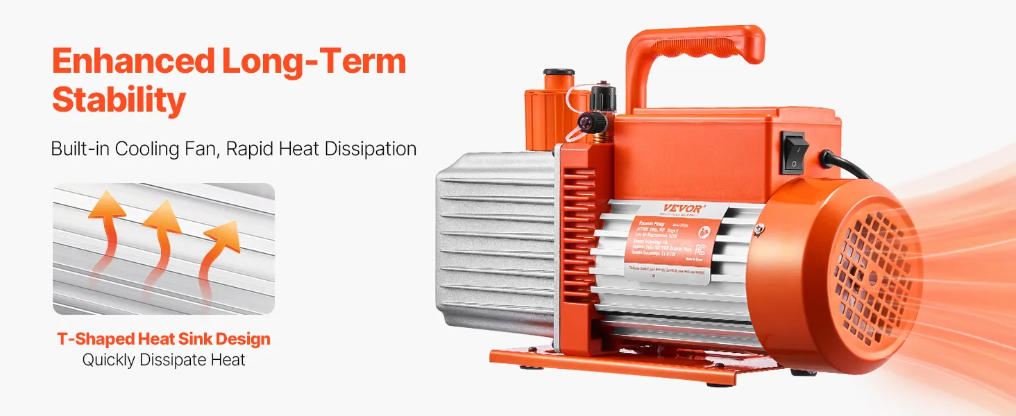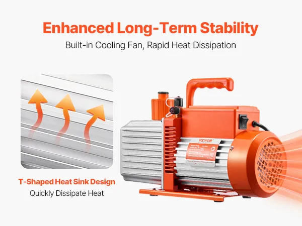 Stabiele, betrouwbare werking: Deze airconditioner-vacuümpomp wordt aangedreven door een krachtige 4-traps puur koperen motor en biedt langdurige prestaties en efficiëntie. De ingebouwde koelventilator voorkomt oververhitting en zorgt voor consistente, betrouwbare prestaties, zelfs bij langdurig gebruik.