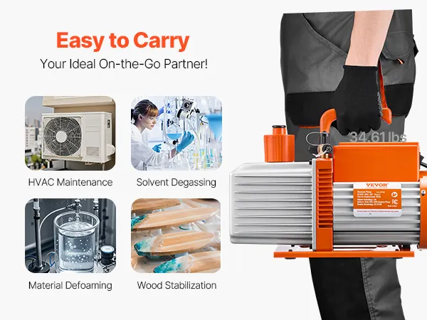 Uitzonderlijke compatibiliteit: deze HVAC-vacuümpomp is uitgerust met 1/4" SAE- en 3/8" SAE-connectoren en werkt naadloos met een verscheidenheid aan systemen, waaronder auto- en kleine koelsystemen met R22, R134a en R410a. Of u nu auto's of HVAC-apparatuur thuis onderhoudt, de klus is met gemak geklaard.