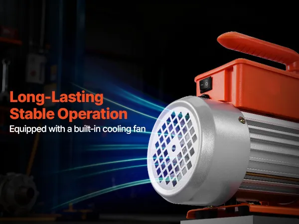 Hoge vacuümprestaties: Deze eentrapspomp is uitgerust met een krachtige 4-polige motor en bereikt een maximaal vacuüm van 5 Pa bij een debiet van 99 l/min (3,5 CFM). Het geïntegreerde olievolume van 0,21 qt (200 ml) garandeert een stabiele werking op lange termijn en efficiënt onderhoud.