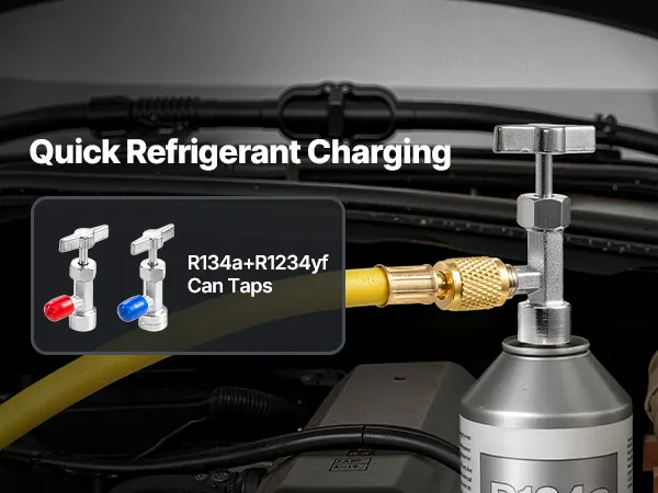 Breed scala aan koelmiddelen: Compatibel met R134a, R22, R410a, R1234YF, R32 en andere gangbare, niet-brandbare koelmiddelen. Ideaal voor reparatie van auto-airconditioning, HVAC-onderhoud, koeltechniek en industriële toepassingen.