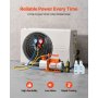 V: Kan deze vacuümpomp voor airconditioners snel een airconditioner in huis stofzuigen? Is de luchtstroom voldoende? A: De pomp is voorzien van een tweetraps roterende schottenpomp met een debiet van 198 l/min (7 cfm) en is daarom bij uitstek geschikt voor airconditioningsystemen in woongebouwen. Hij bereikt een vacuüm van < 30 Pa en is geschikt voor de koudemiddelen R134a, R22, R410a en andere niet-brandbare koudemiddelen.
