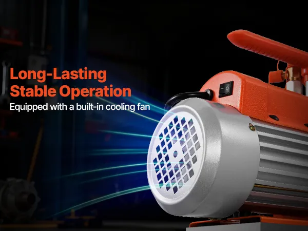 Hoge vacuümprestaties: Deze tweetrapspomp is uitgerust met een krachtige 4-polige motor en bereikt een maximaal vacuüm van 0,3 Pa bij een debiet van 198 l/min (7 cfm). Het geïntegreerde olievolume van 0,26 qt (250 ml) garandeert een stabiele werking op lange termijn en efficiënt onderhoud.