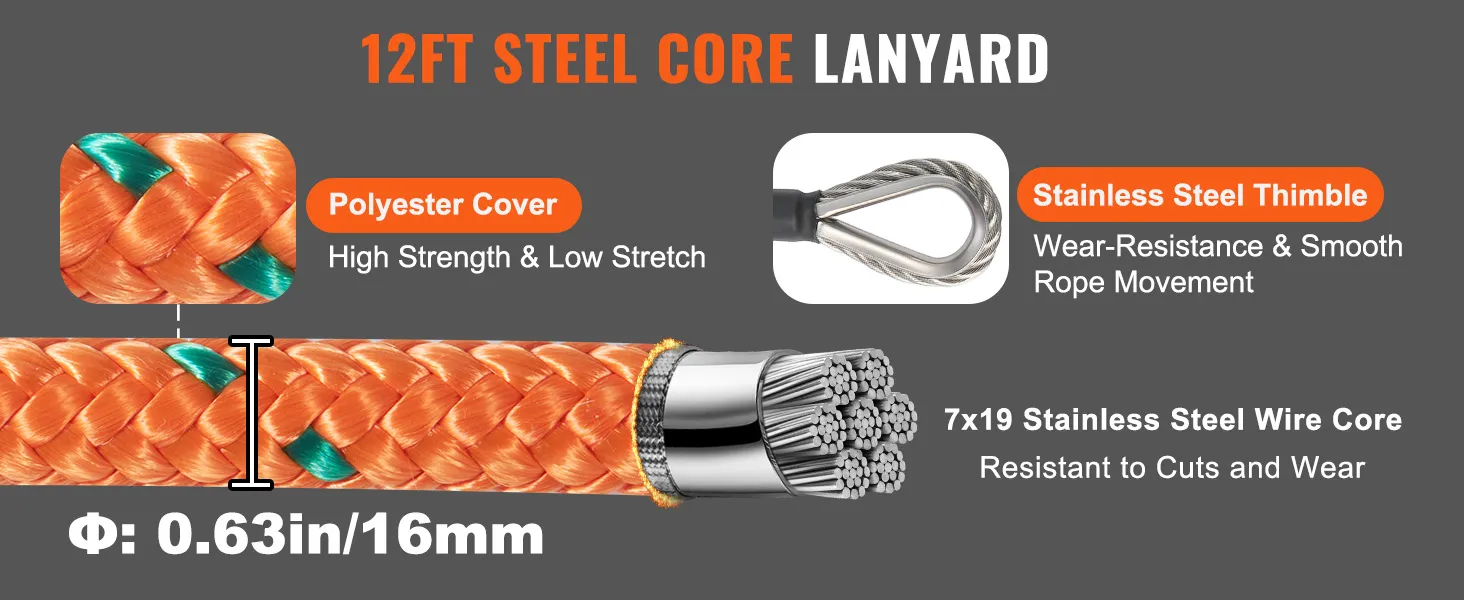 VEVOR Steel Core Flipline for Elevated Safety and Stability