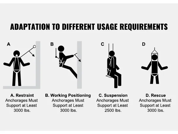 Sterke trekkracht: De breekkracht bedraagt maximaal 38 kN. De sterke trekkracht zorgt voor uw veiligheid bij het werken in de lucht en biedt u een onbreekbare bescherming. Of u nu op de bouwplaats of buiten werkt, u kunt erop rekenen.