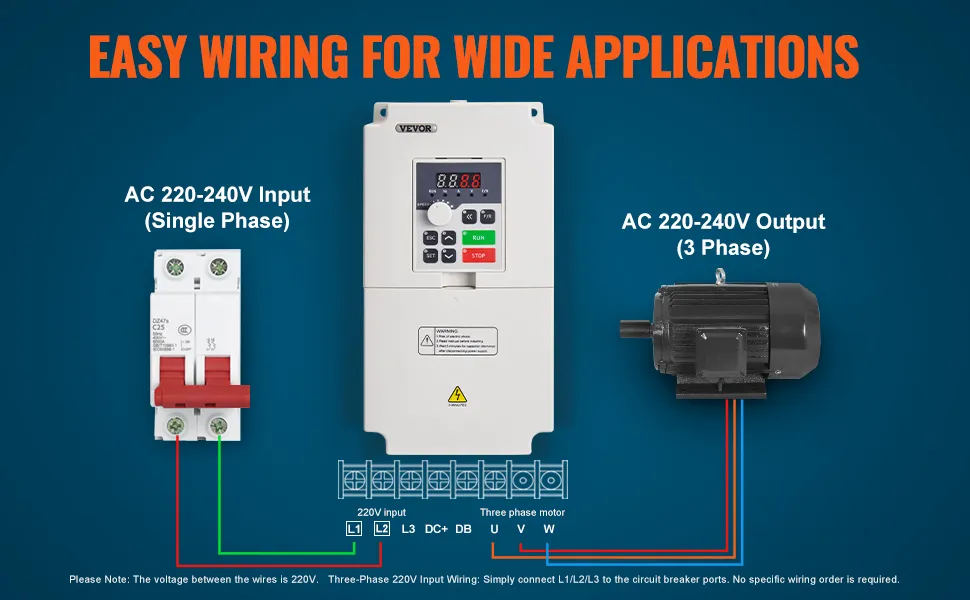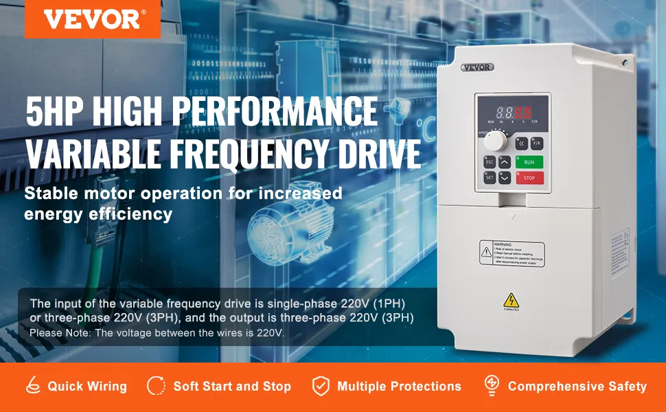 Grote veelzijdigheid: onze frequentieregelaar is ideaal voor het aandrijven van driefasemotoren in verschillende machines, waaronder CNC-freesmachines, CNC-machines, freesmachines, boormachines, compressoren, pompen, slijpmachines, centrifuges en andere machines met variabele snelheidsregeling. Voor hogere motorbelastingen selecteert u een VFD met een hoger vermogen voor optimale resultaten.