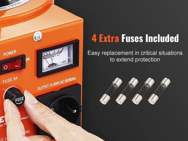 Onze variabele spanningstransformator biedt een instelbereik van 0-300 V, zekeringen, thermische schakelaar, resetbare overbelastingsbeveiliging en zorgt voor een betrouwbare stroomvoorziening.