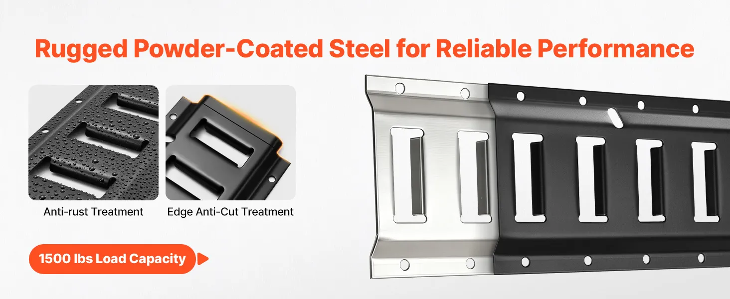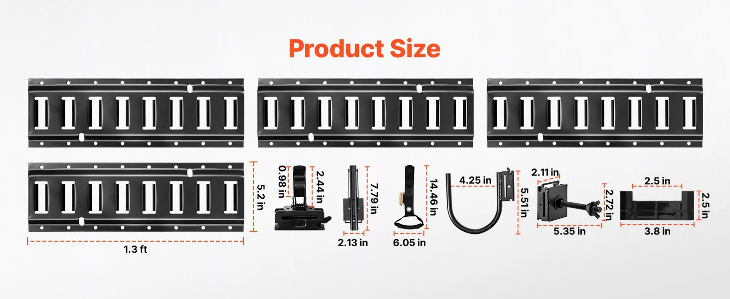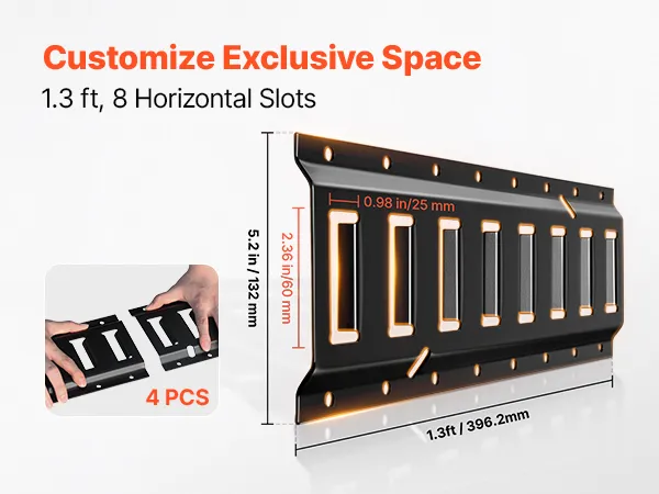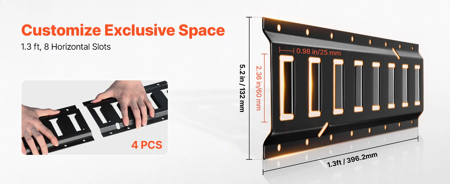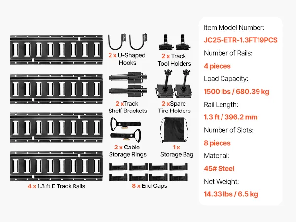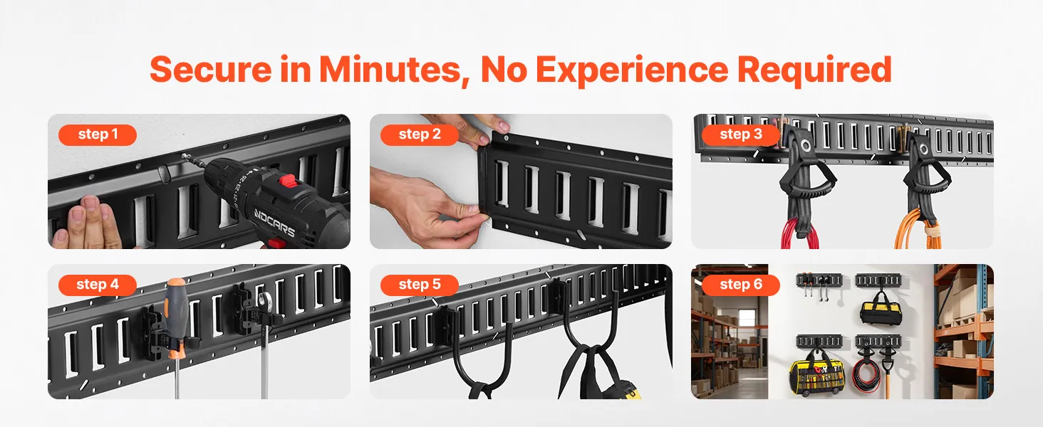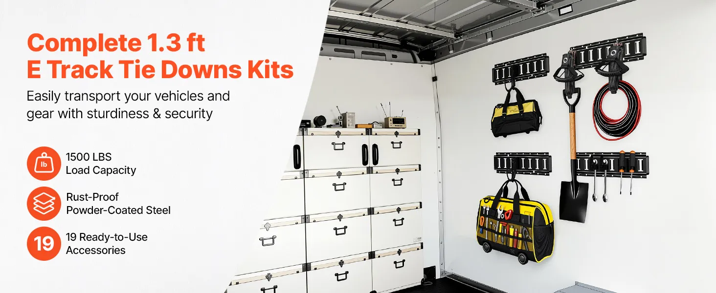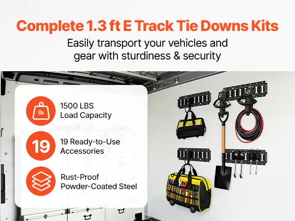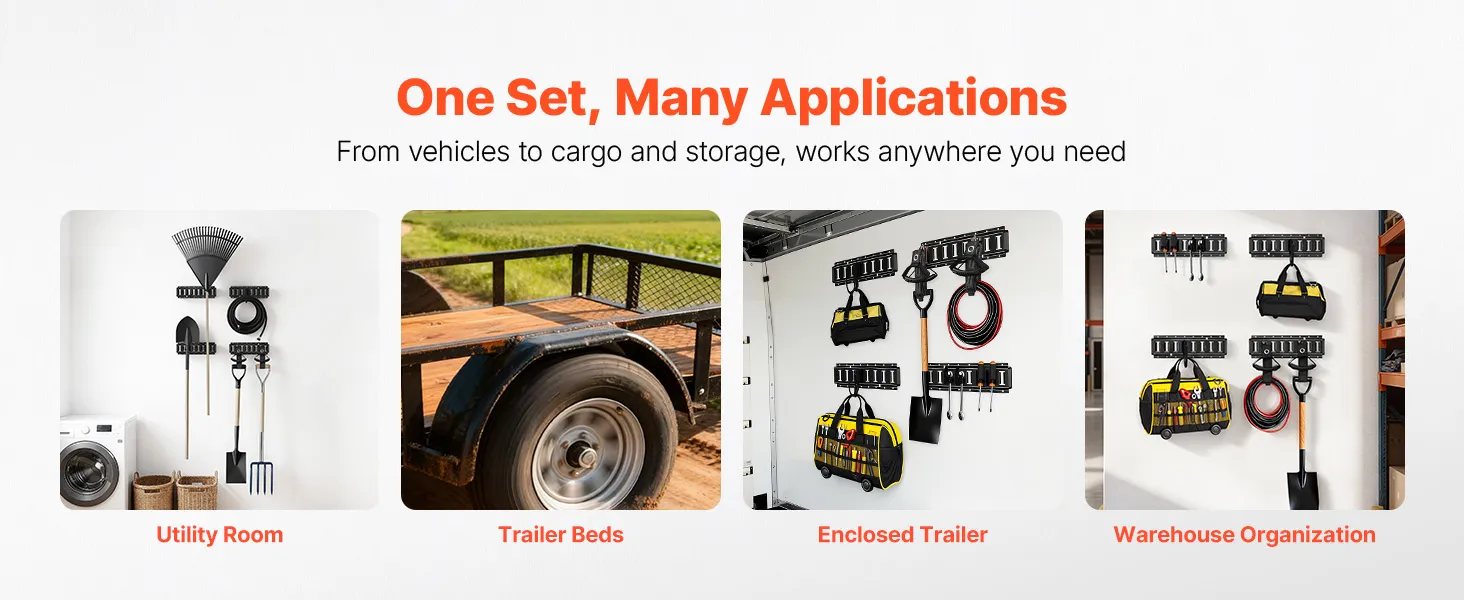 Veelzijdige montagemogelijkheden: U kunt de E-Track eenvoudig monteren op de vloer van een trailer of op de wanden van een garage. De robuuste, breukvaste rails zijn bestand tegen zware belasting en barre weersomstandigheden, waardoor uw opstelling dag na dag stabiel blijft.