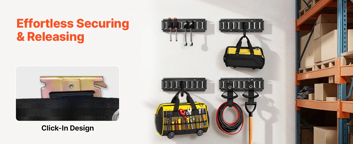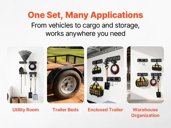 Spanriemen en organisatie: Dit aanhangerspansysteem zet zware ladingen vast voor transport en organiseert dagelijkse uitrusting. Garages, gesloten aanhangers en werkvoertuigen blijven netjes met gereedschap, kabels en reserveonderdelen op hun plaats.