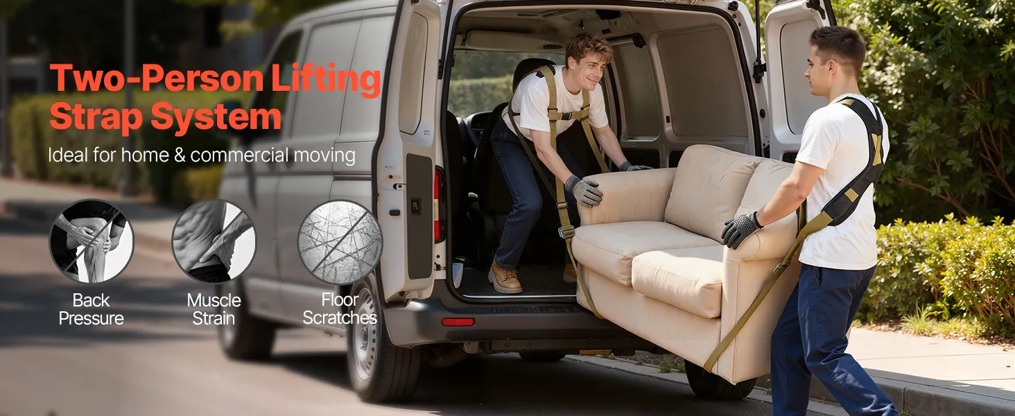 VEVOR hefbanden, ondersteunt tot 453,6 kg, 2-persoons hef- en transportsysteem met 2 banden en 2 draagriemen, verstelbare hefbanden voor het vervoeren van meubels, apparaten en matrassen