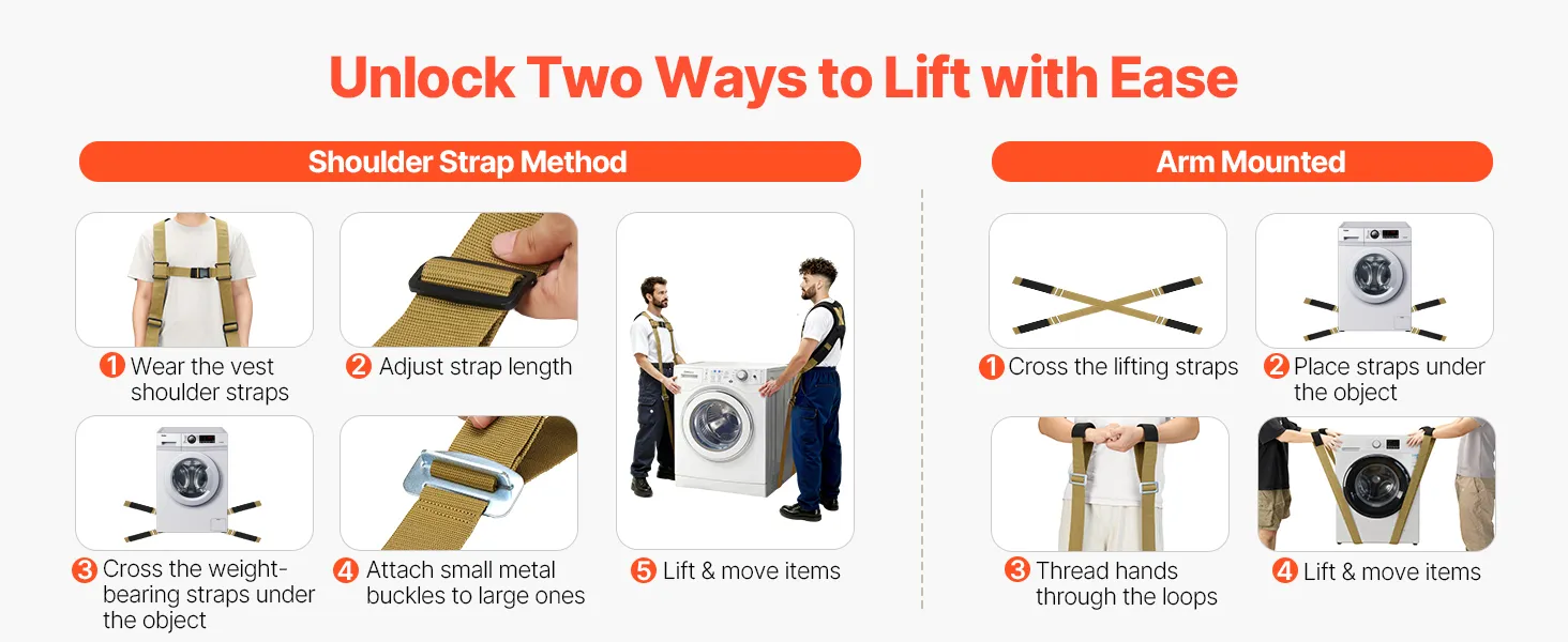 Onze meubelhefband heeft een eenvoudig draagontwerp, waardoor u kunt kiezen tussen een schouder- of armriem voor comfortabel dragen. De draagstappen zijn duidelijk en snel te leren en kunnen in slechts enkele minuten worden geleerd, wat complexe transporttaken vereenvoudigt.