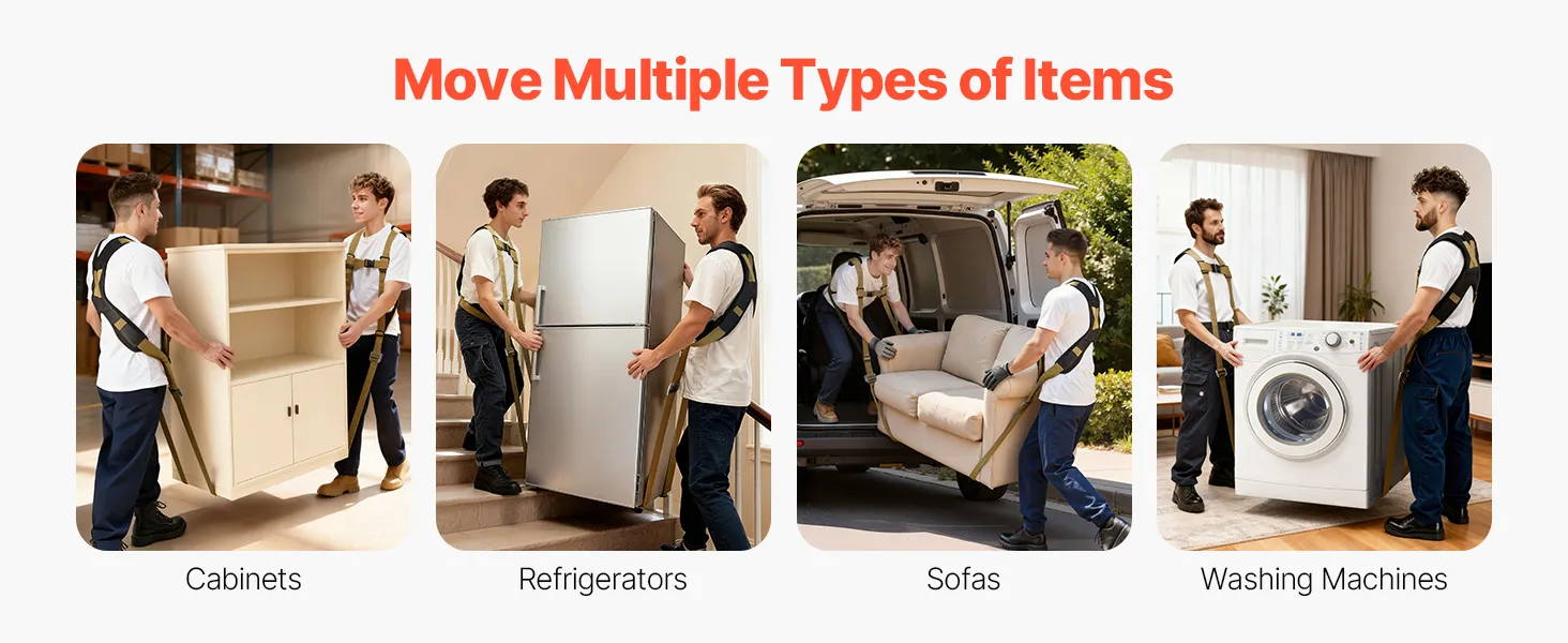 Deze meubeltilband is ontworpen voor zowel thuis- als commercieel gebruik. Hij verdeelt het gewicht van objecten effectief, waardoor de druk op de lendenwervelkolom en armen wordt verminderd en de spieren en onderrug worden beschermd. Hij voorkomt ook dat meubels de vloer krassen tijdens het verplaatsen, waardoor het tillen gemakkelijker wordt.