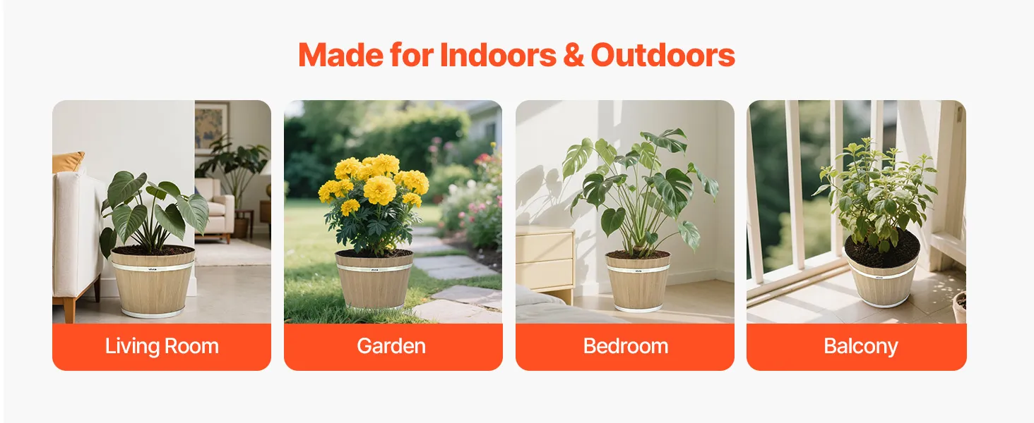 Deze veelzijdige plantenbak is geschikt voor woonkamers, terrassen, balkons en vensterbanken. Zowel binnen als buiten voegt hij een natuurlijke touch toe aan elke kamer en creëert een gezellige, tuinachtige sfeer.